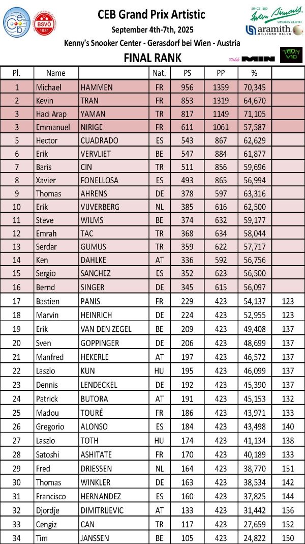 | Erik VAN DEN ZEGEL | László TÓTH | Kevin TRAN | Bernd SINGER | ||||